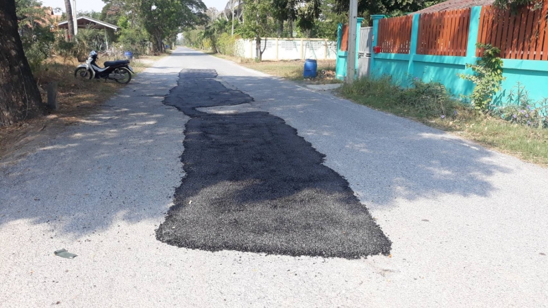 | ซ่อมแซมถนนที่เป็นหลุมเป็นบ่อในพื้นตำบลจันอัด#ถนนช่วงบ้านโค้งกระชาย |