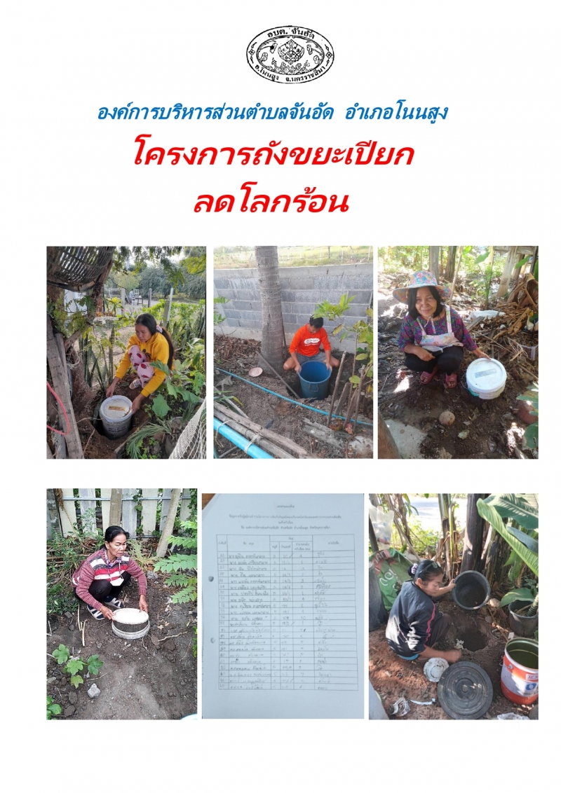 องค์การบริหารส่วนตำบลจันอัด ได้ดำเนินการติดตามการจัดทำถังขยะเปียก ลดโลกร้อน ในพื้นที่ตำบลจันอัดทั้ง 8 หมู่บ้าน